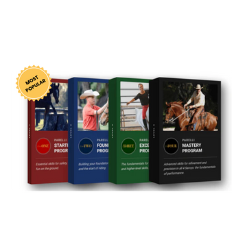 Once you've completed Level One, you will continue your development into a well-rounded horseman by following the Parelli Program into Level 2, Level 3, and finally Level 4. Each Level builds by adding additional Savvys (ways we play with our horses on the ground and riding) while also expanding on the skills you've previously learned by increasing their speed and complexity and improving your level of communication and strength of bond.