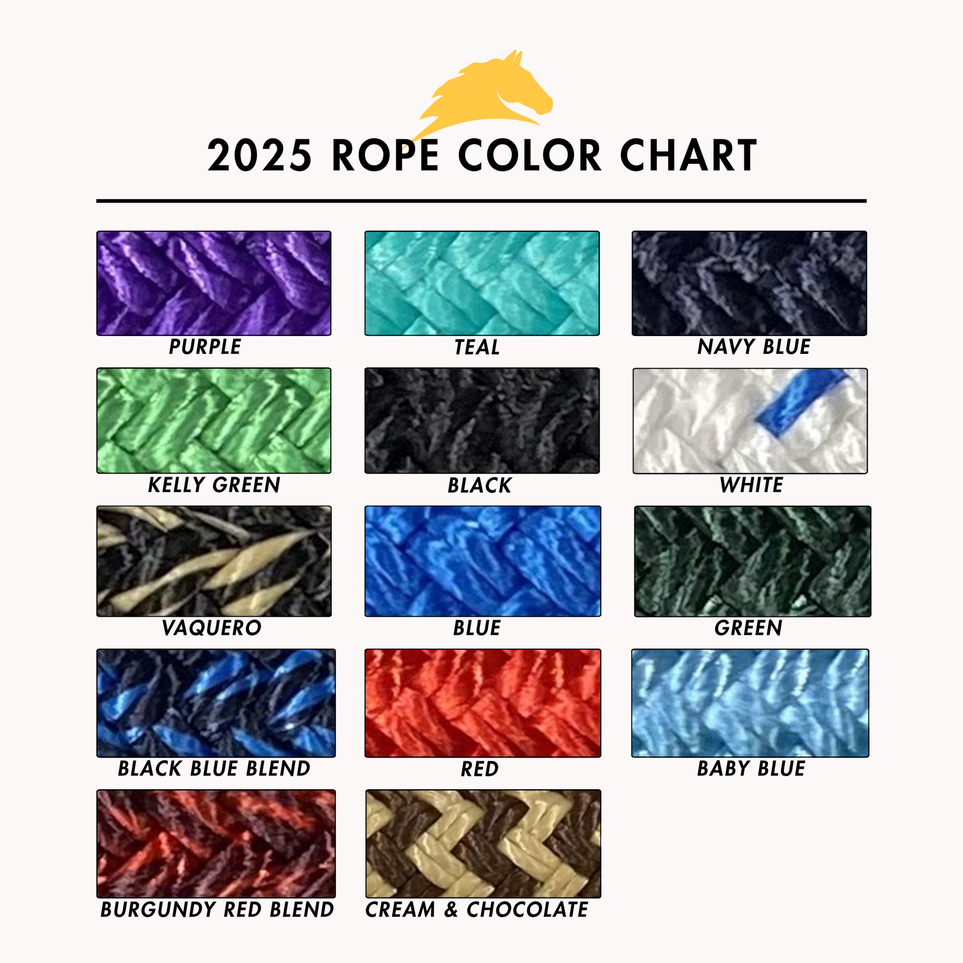 1/4 inch yachting braid with simple knots under the chin and on the sides, non-fray ends, and loop attachment. This 100% polyester rope has been specifically engineered with horsemanship use in mind. The Parelli rope is dirt, sweat, mildew, rot, and UV resistant. This means your rope will stay truer to its original form longer, without fading, stretching, popping, or elongating. Other ropes in the industry used to make halters are typically nylon yachting ropes and are not designed to withstand the unique challenges of an equine application. Nylon rope stretches, can become stiff with use, increases in size over time, and absorbs unwanted moisture.