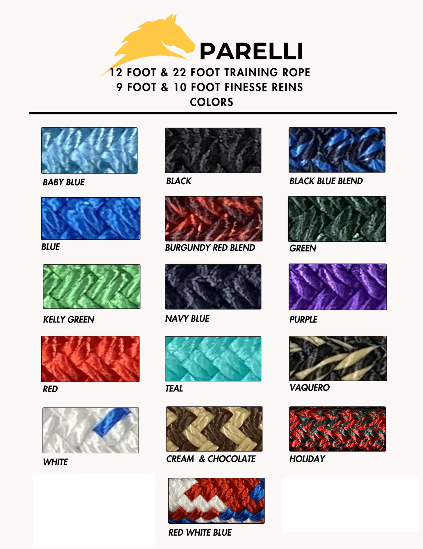 Jan SmithParelli 12' Training Rope - 08/06/2022"These ropes are an absolute must! I bought my first equipment over 20 years ago and still have that same equipment. It is used pretty much every single day. The quality is second to none and well worth the price. You may want more than one if you have more than one horse and want one handy to get to if your barn is very big. The "feel" you get with this rope and snap makes a huge difference to your horse learning quickly in a kind manner. :)"